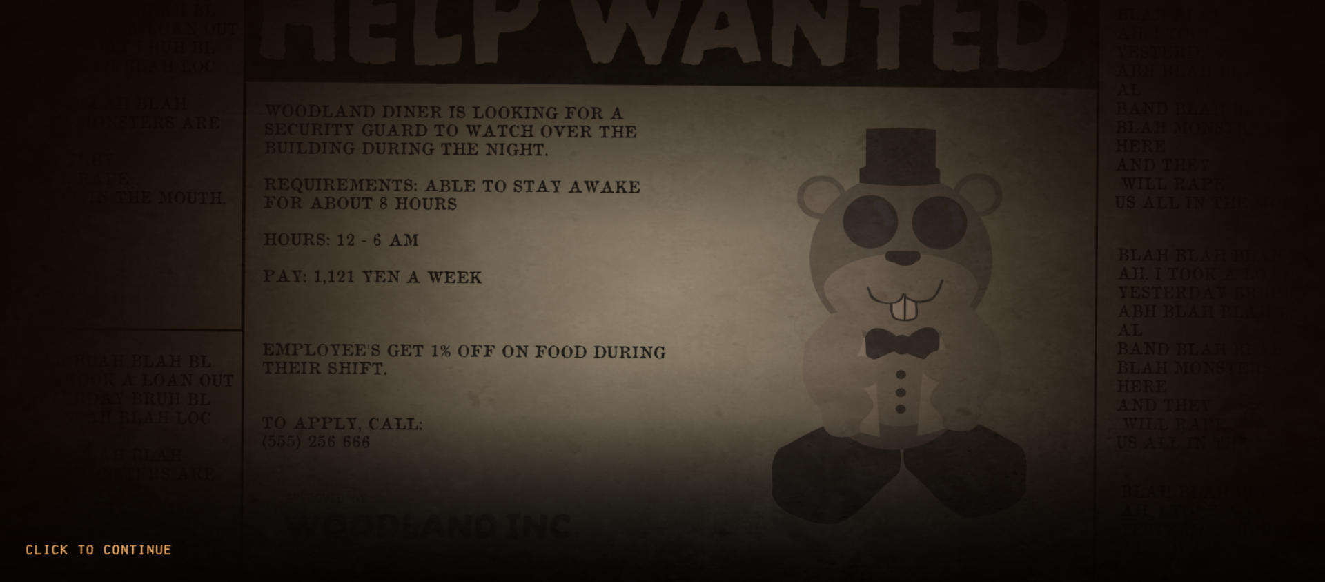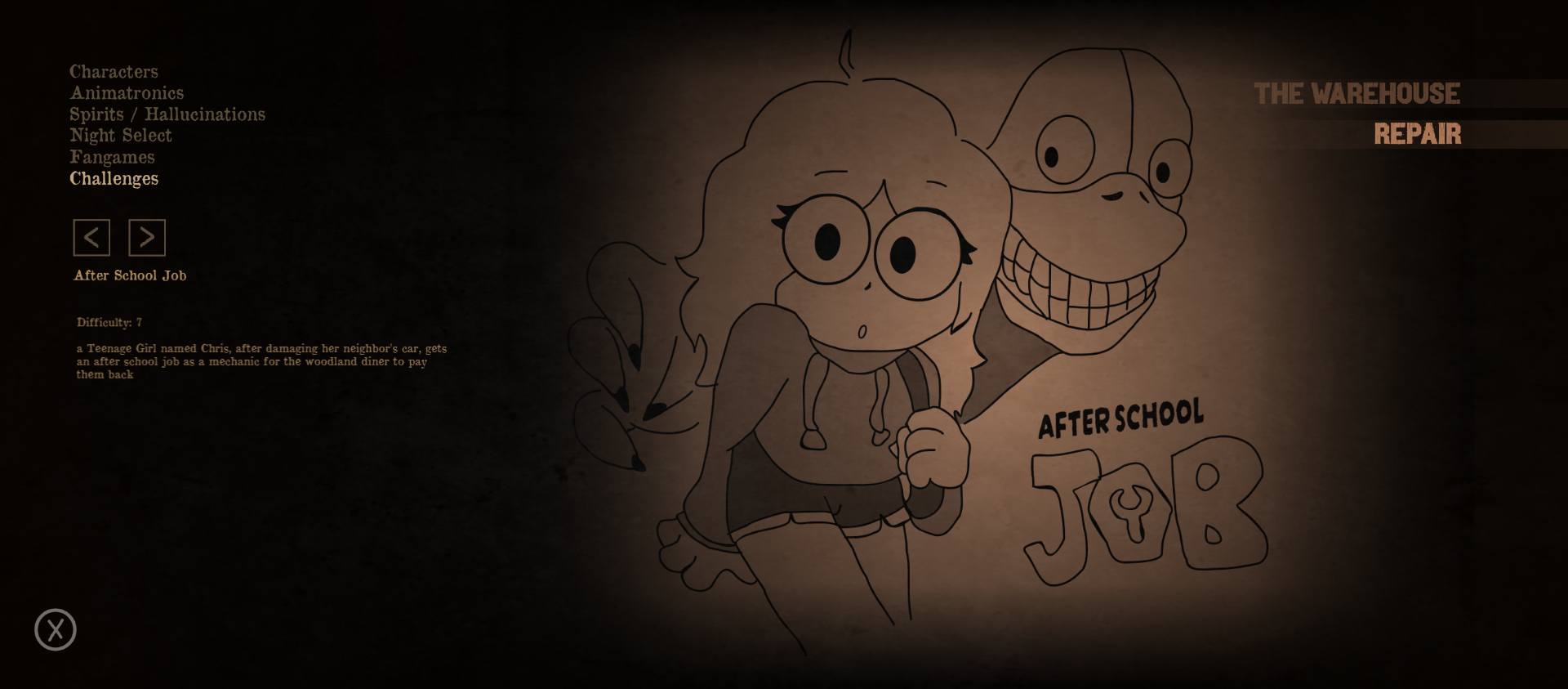CRUNCHER'S is a story-driven fan game based on Five Nights at Freddy's that incorporates 4 different gameplay sections. all different from the last. While it features a cute, anime-inspired art style, it also incorporates visually dark and unsettling elements. The story, despite its cartoonish presentation, deals with dark and mature themes such as death and trauma.